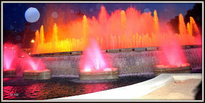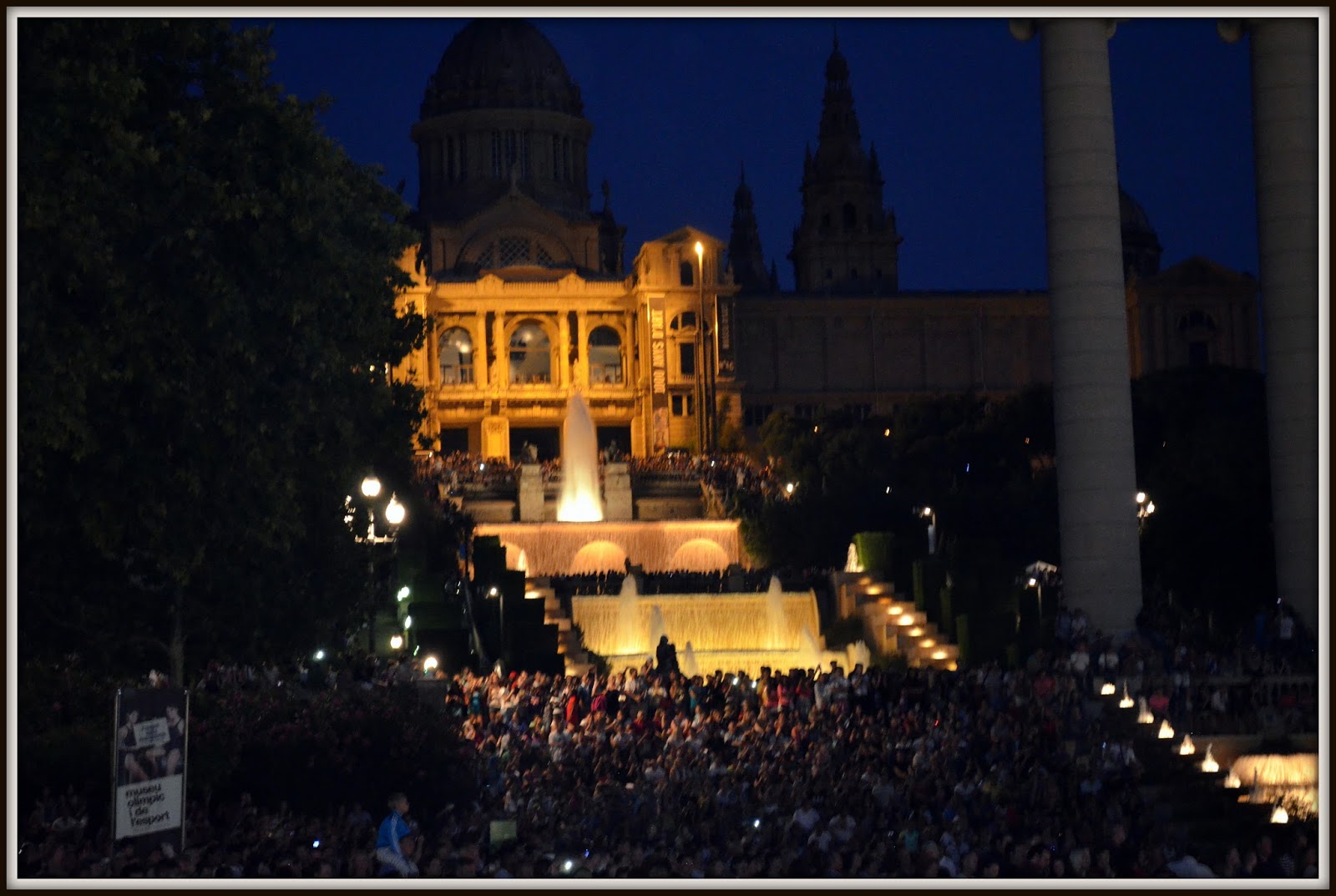 Endelig, etter å ha ventet i flere timer til å bli mørk, ble det slutt på ventetiden. . Vi skulle se på de magiske fontenene som er så berømt her i Barcelona. Stedet heter ” Font Magica de Montjuic.