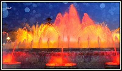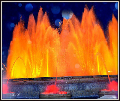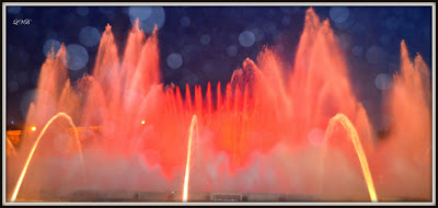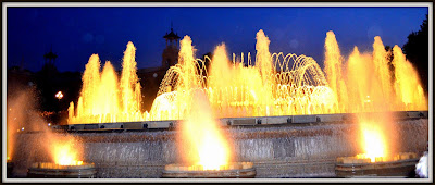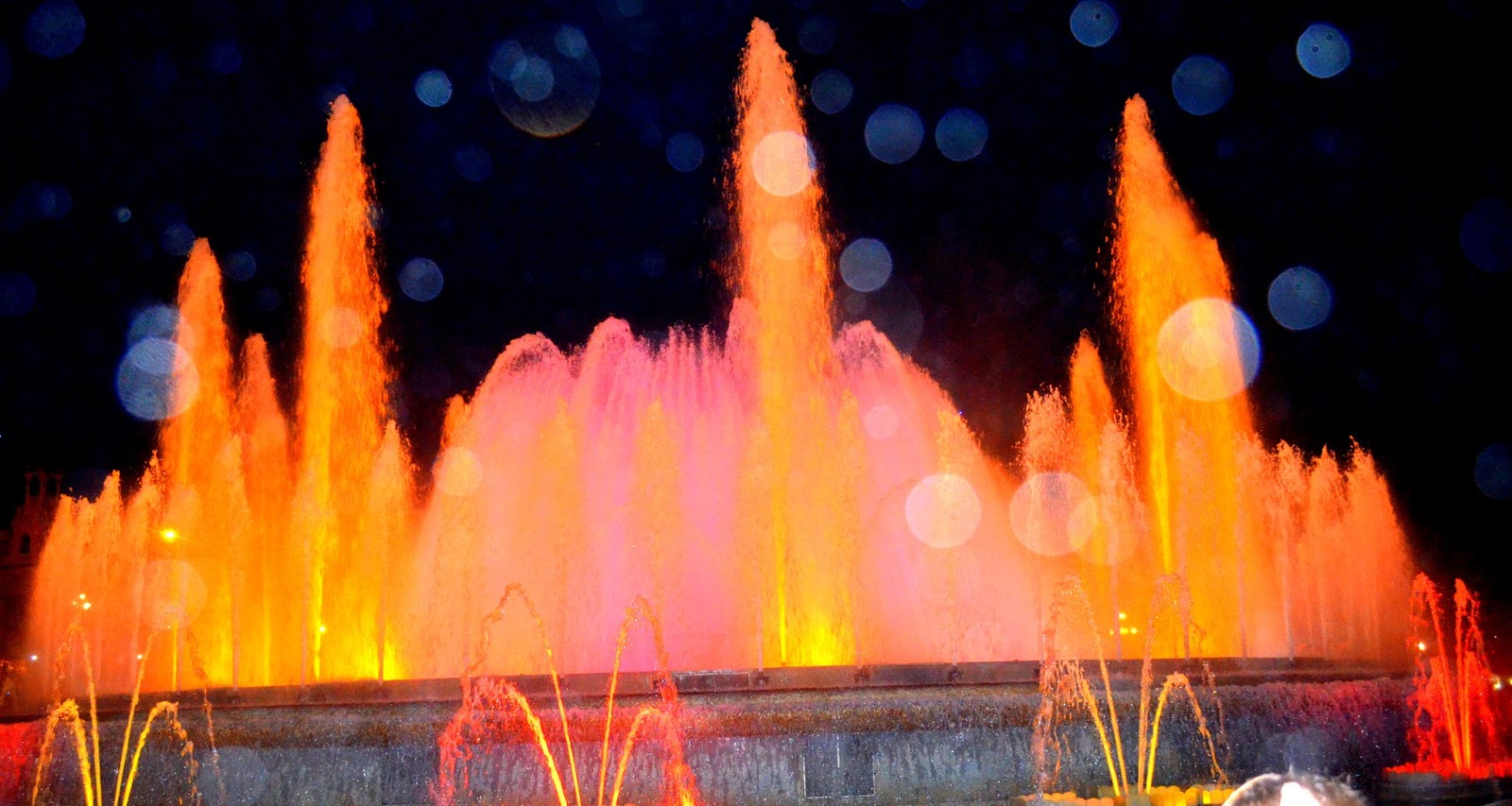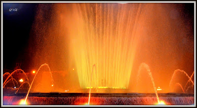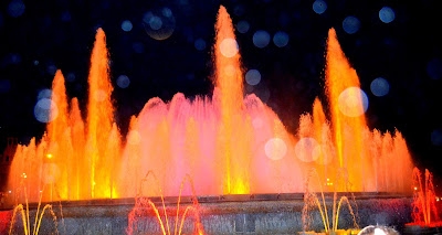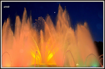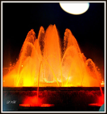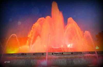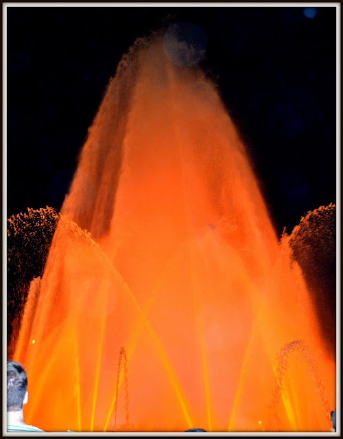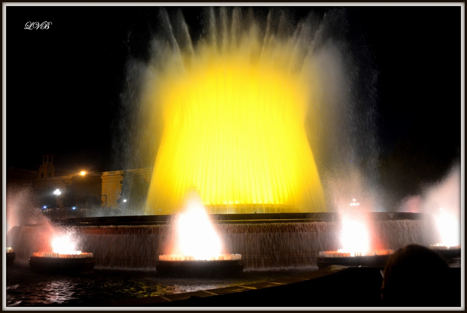 Endelig, etter å ha ventet i flere timer til å bli mørk, ble det slutt på ventetiden. . Vi skulle se på de magiske fontenene som er så berømt her i Barcelona. Stedet heter ” Font Magica de Montjuic.