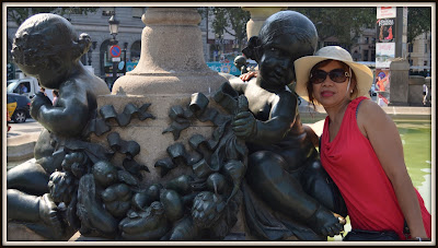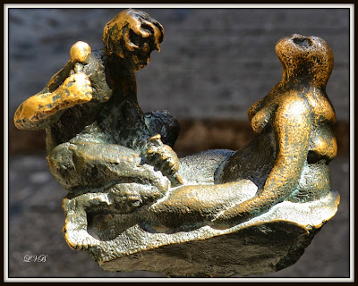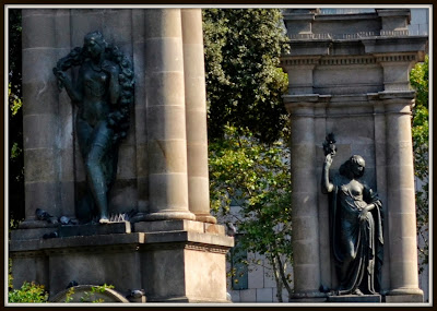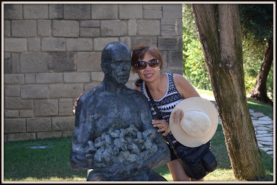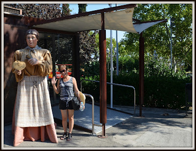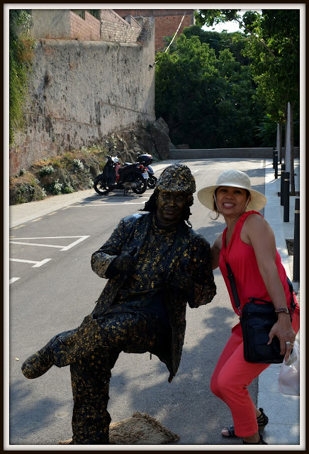 Håper jeg ikke skremte deg. Død eller levende var statuene jeg har funnet i Barcelona. Egentlig, de er levende, men de rører seg ikke . Det er deres måte til å tjene penger fra turistene. Man kan ta bilde sammen med dem og legge pengene i esken som liggger foran dem. Men, det var virkelig varmt, og de var kledt fra hodet til tå, så det var tøft for dem, tror jeg. Men denne statuen rørte seg for å låne meg hatten sin med slange som pynt. Heldigvis, var slangen ikke levende:)