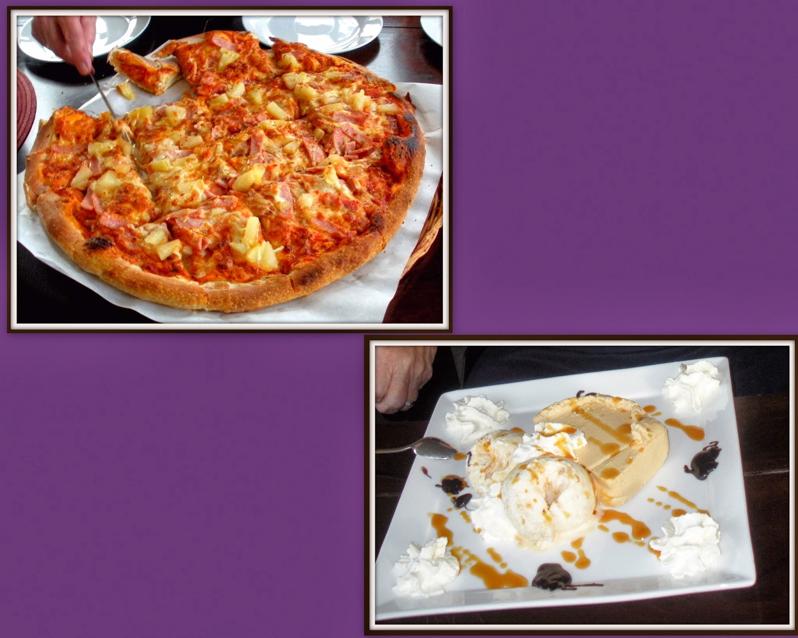 Etter turen der, dro vi til en restaurant og spiste pizza. Noen har bestilt karamel pudding til dessert. Vi koste oss virkelig.