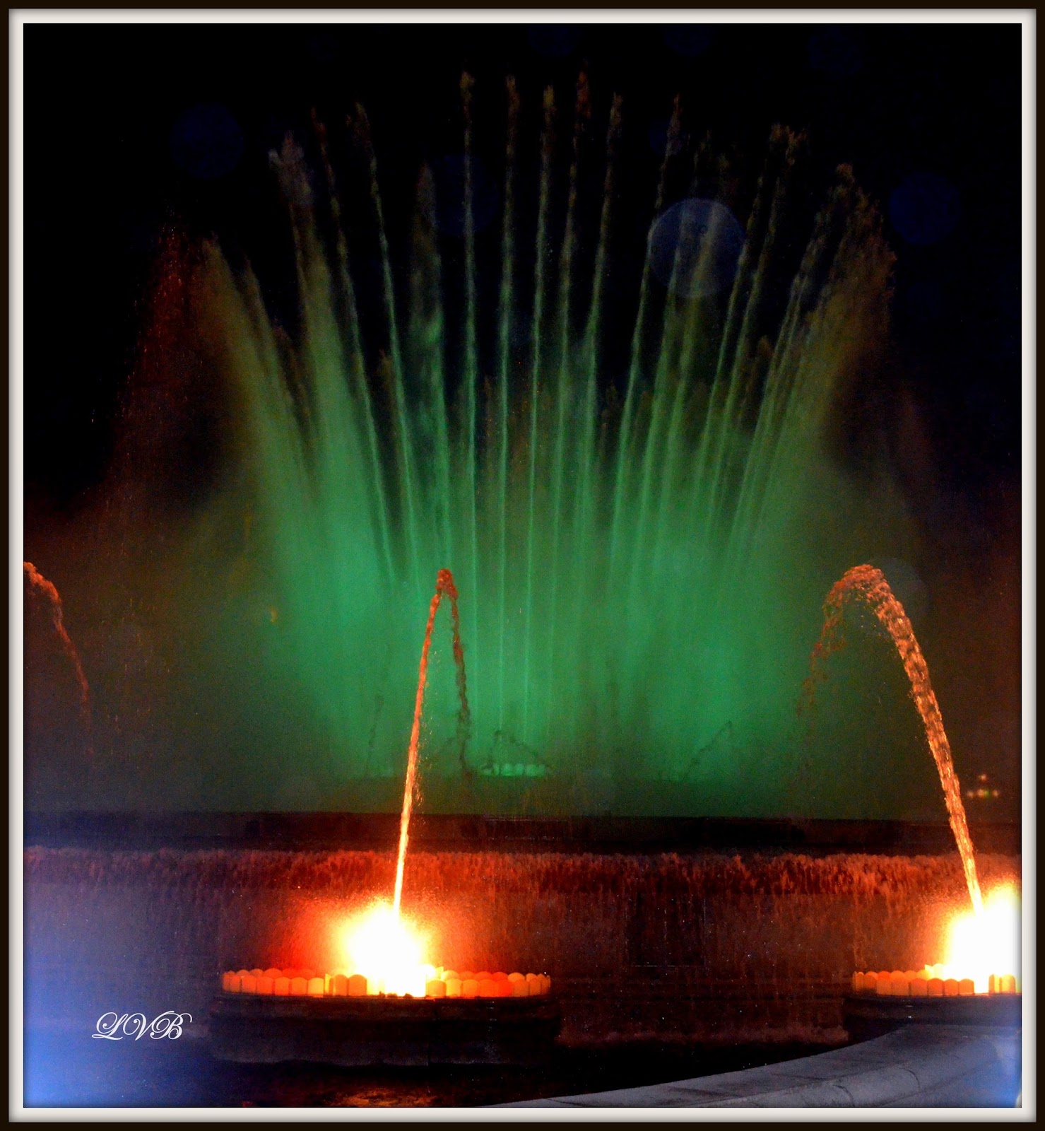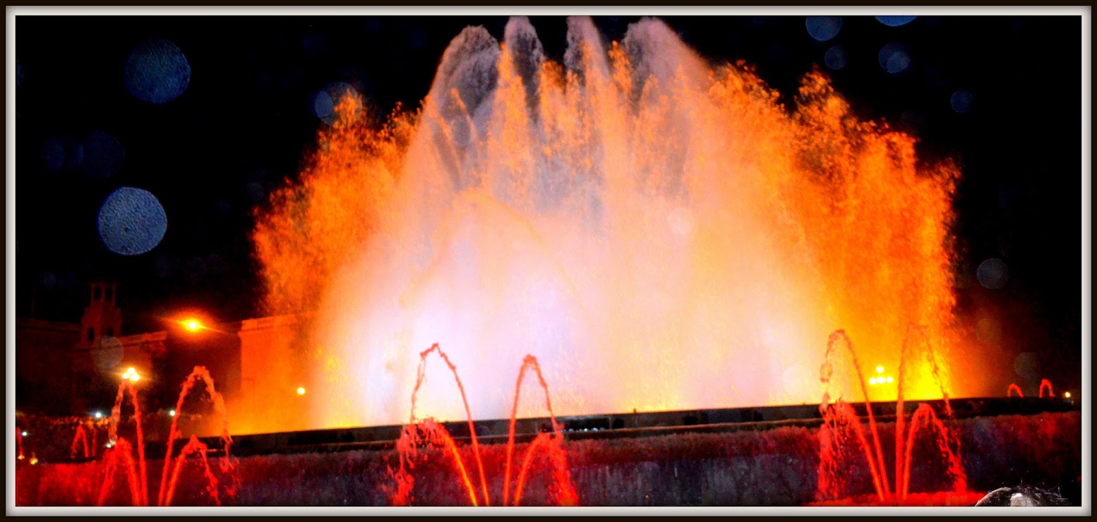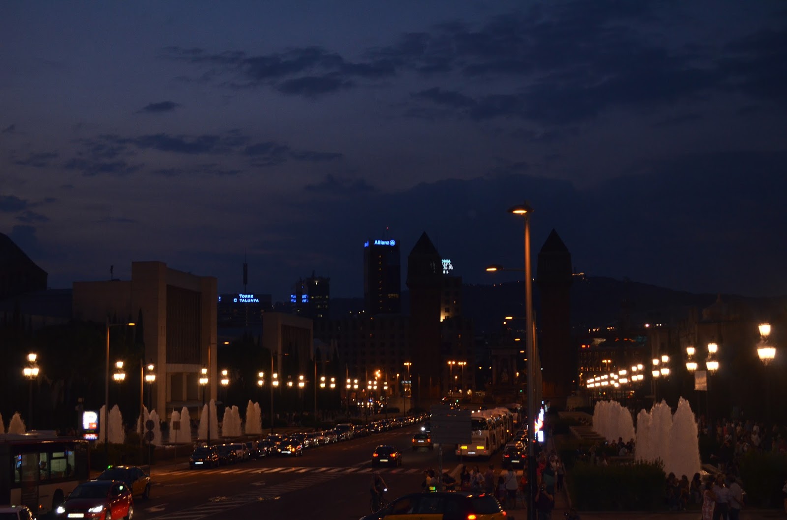 Endelig, etter å ha ventet i flere timer til å bli mørk, ble det slutt på ventetiden. . Vi skulle se på de magiske fontenene som er så berømt her i Barcelona. Stedet heter ” Font Magica de Montjuic.