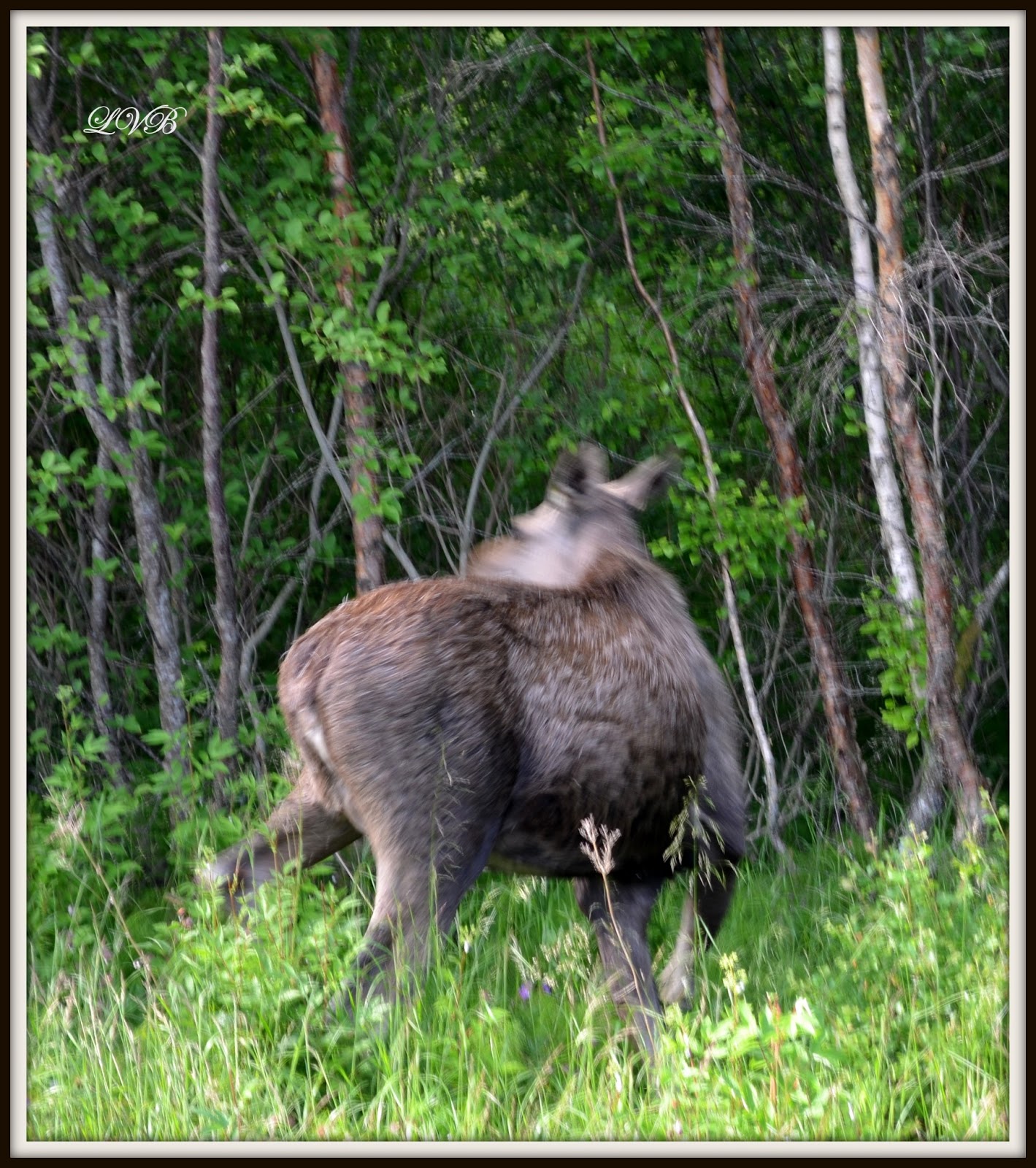Så det var på tida å kjøre videre, men vent! Det er noen som ville haike tror jeg. En kalv av en elg.